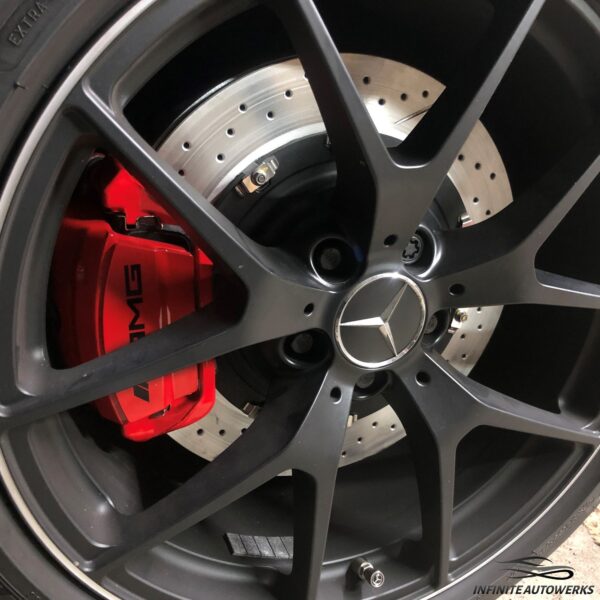 - OEM TRW single piston calipers with e-brake actuator from AMG GT, E63, C63s, etc. with required hardware in your choice of color