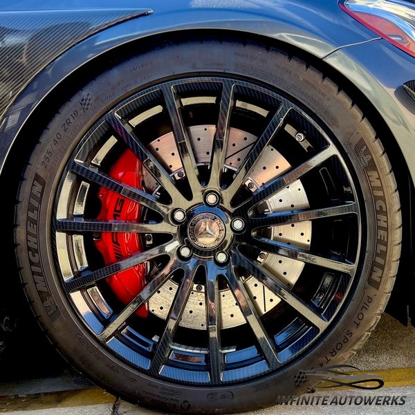 - OEM Brembo 6-piston calipers from AMG GT, E63, C63s, etc. with required brackets and hardware in your choice of color
