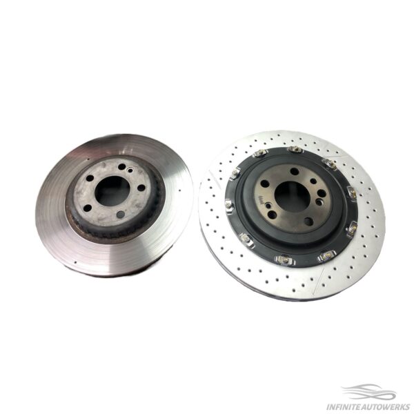 Brake harder and with less brake fade with Infinite Autowerks Big Brake Upgrade Suite! This kit not only makes your car look great, but will allow you to stop on a dime over and over again! On the front, our engineers opted for a fixed 6-piston Brembo OEM caliper with OEM pads. Following up on the rear, we have utilized the floating OEM TRW calipers with integrated E-parking brake so no OEM functionality is lost. If you need a more aggressive pad, please reach out after ordering to specify which pad you would like. We include any pad with purchase, but ship with OEM pads by default. Give your vehicle incredible stopping power with OEM Brembo/TRW performance calipers as found on cars like the AMG GTR and BMW M5.
