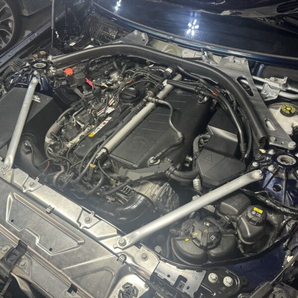 This OEM BMW part kit strut braces provide additional rigidity and sharper handling to the chassis by reducing flex under hard cornering conditions. We take G80 M3 OEM parts and other OEM BMW braces and create a kit solution to install on your non-M car such as the 330I or M340. With more control, spirited driving becomes easier and infinitely more enjoyable. Not only do the braces provide a performance benefit but they beef up the visuals in the factory engine compartment. Increase turn in feel and reduce high speed floaty feeling with this OEM Genuine BMW parts retrofit.